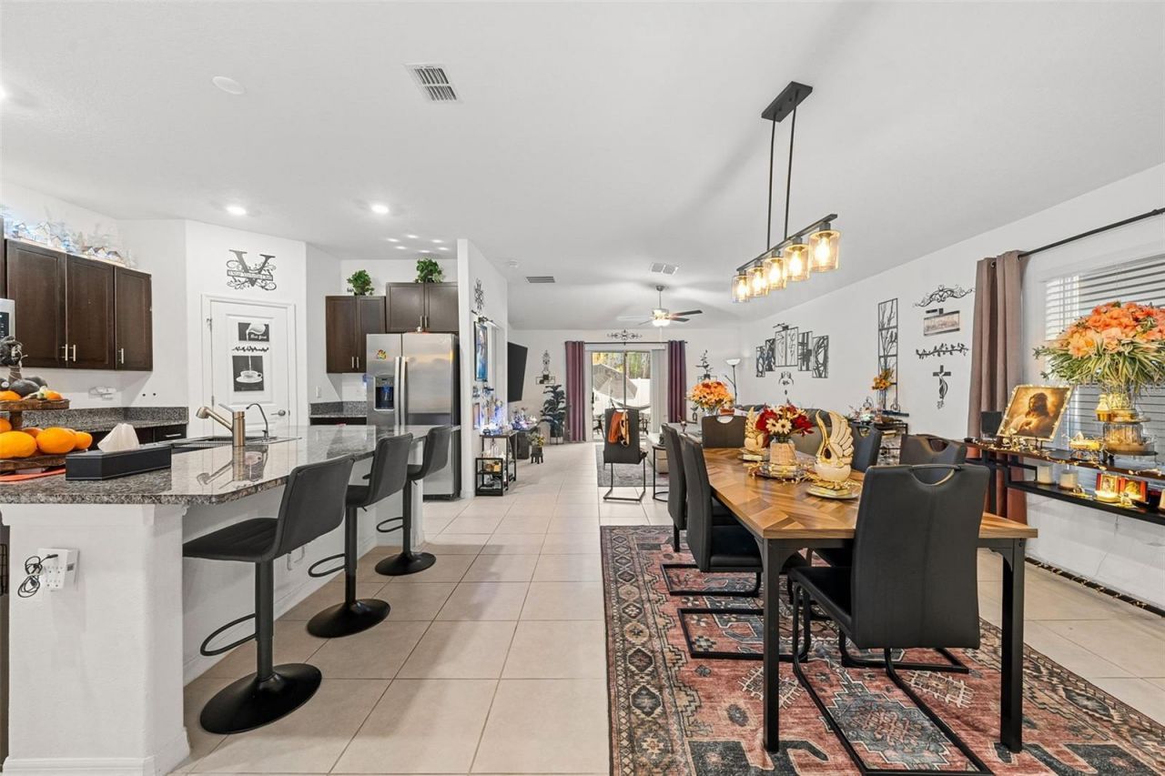 Welcome to this one-story home located in the Saddle Creek subdivision in Lakeland, FL. This home, which has NO REAR NEIGHBORS, features 4 bedrooms, 2 bathrooms, and a 2-car garage. Inside, you'll find a bright dining area and a well-appointed kitchen featuring granite countertops, rich brown cabinetry, and a large island with a sink and sit-in bar. The kitchen opens to a comfortable living room with a ceiling fan and relaxing views of the fenced backyard.The home includes an inside laundry room for added convenience, and all bedrooms are equipped with ceiling fans for year-round comfort. The home also features a $15,000 professionally installed seamless aluminum gutter system, designed for maximum durability, low maintenance, and long-term protection of the home's exterior and foundation.The home includes LEASED SOLAR PANELS, which the buyer can assume with NO UPFRONT COST, offering the benefit of reduced and more stable energy expenses.Located just minutes from Downtown Lakeland's shops, restaurants, and the scenic Lake Mirror Promenade. With easy access to I-4, commuting to Tampa or Orlando is a breeze. The home is also a short drive to local schools, parks, and shopping centers.